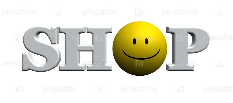 Слово 'магазин' и смайлик - 3d иллюстрация