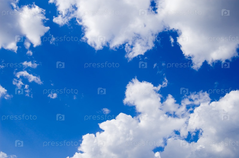 Белые кучевые облака на синем небе