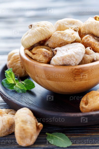 Деревянная чаша с сушеным инжиром