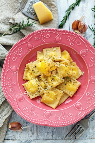 Равиоли с яичным желтком, черным перцем и сыром пармезан