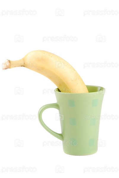 Желтый банан в чашке