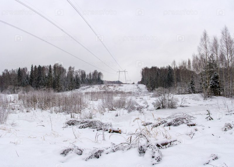 Линия электропередачи через зимний лес