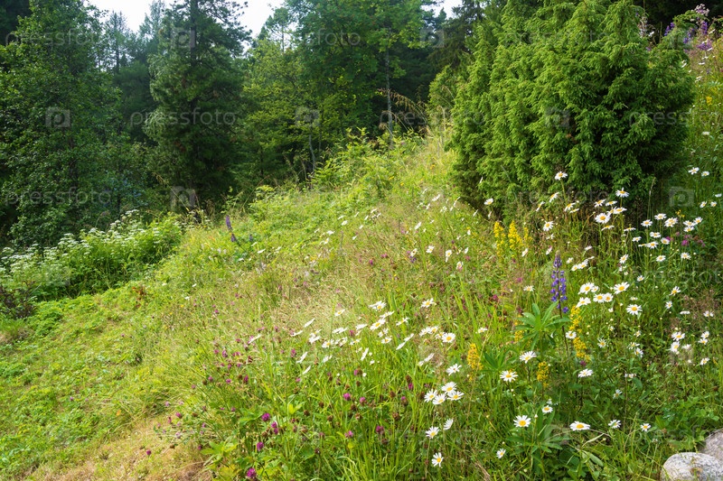 Крутой склон с белыми ромашками