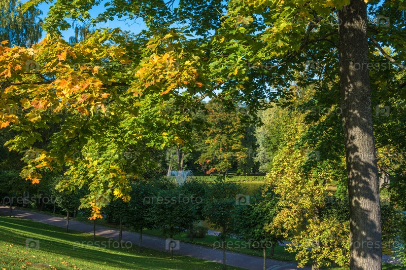 Красивая осенняя площадь в парке Петергофа