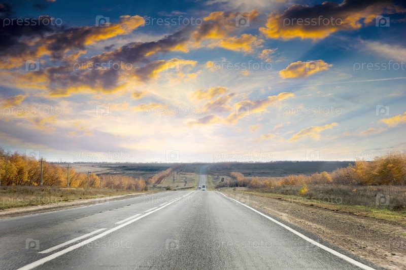 Трасса в сельской местности и красивое небо
