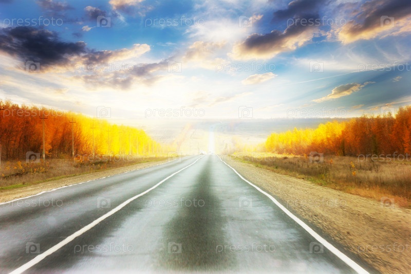 Трасса в сельской местности и красивое небо