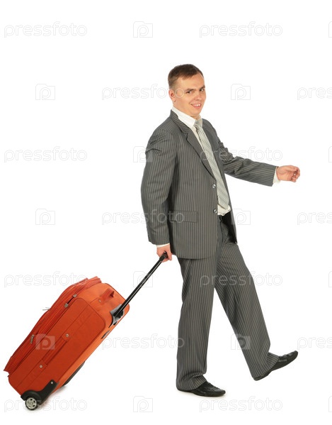 Бизнесмен с багажом на белом фоне