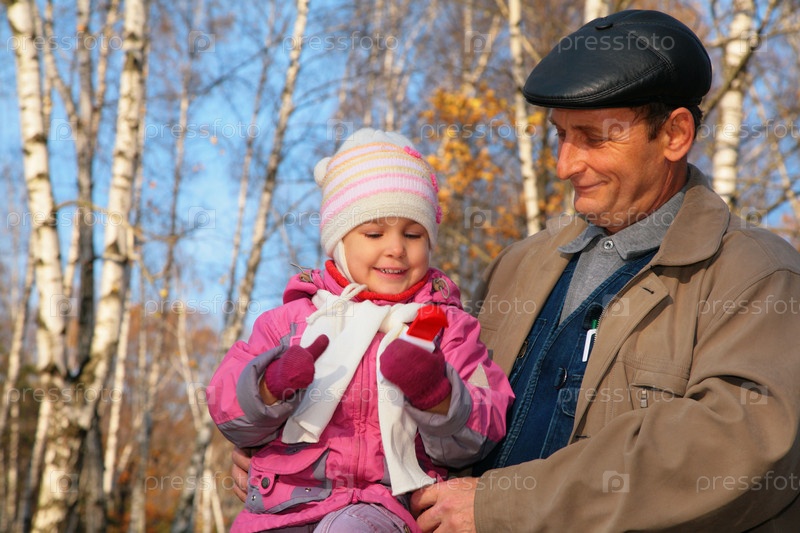 Портрет деда с внучкой в осеннем лесу