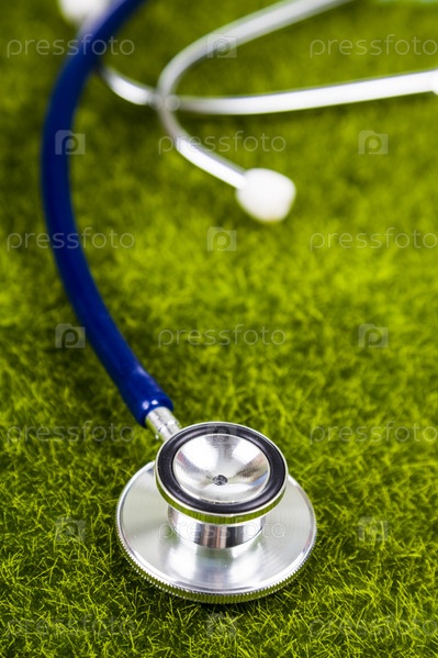 Стетоскоп на зеленой траве