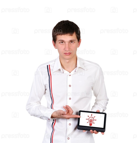 Планшетный компьютер с нарисованной лампочкой