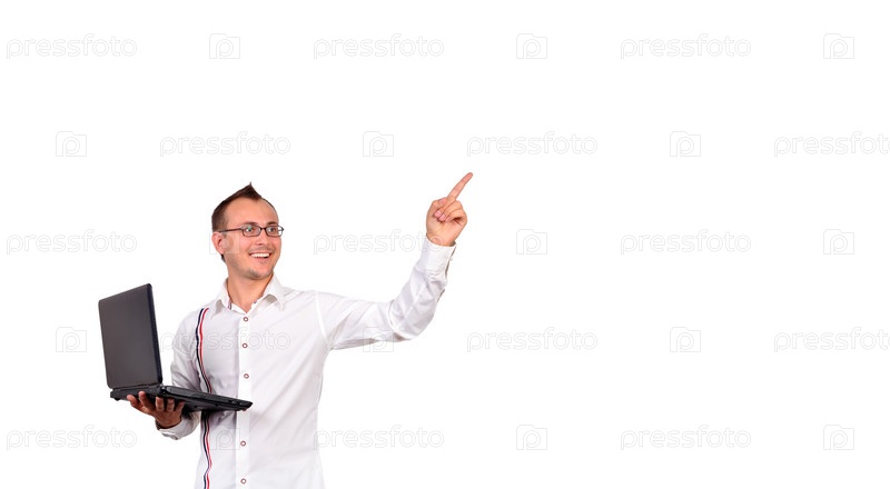 Мужчина показывает на что-то пальцем