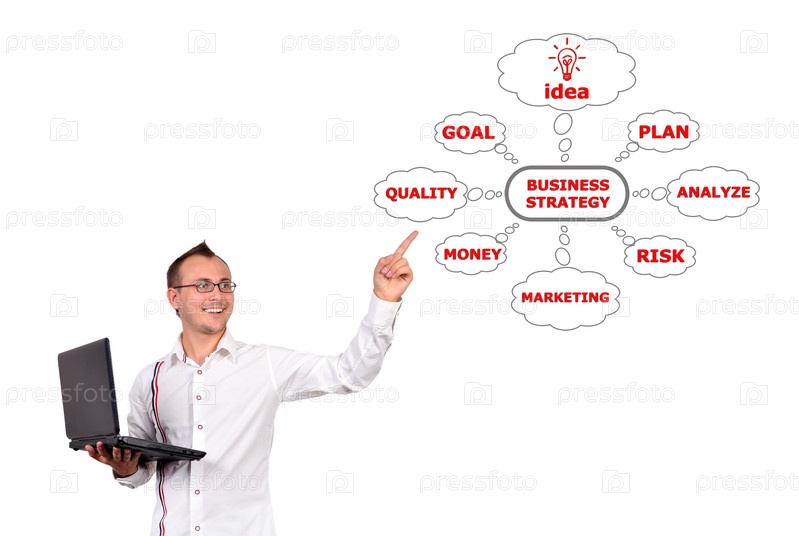 Мужчина указывает на бизнес-стратегию