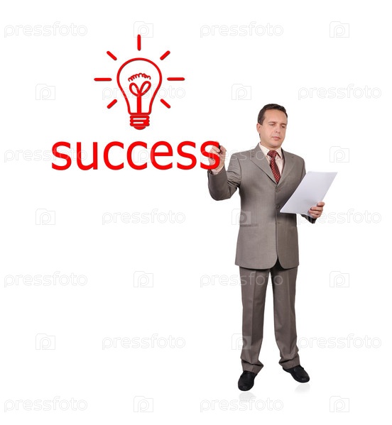 Мужчина пишет слово "успех"