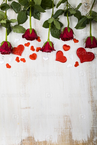 Красные розы и сердца