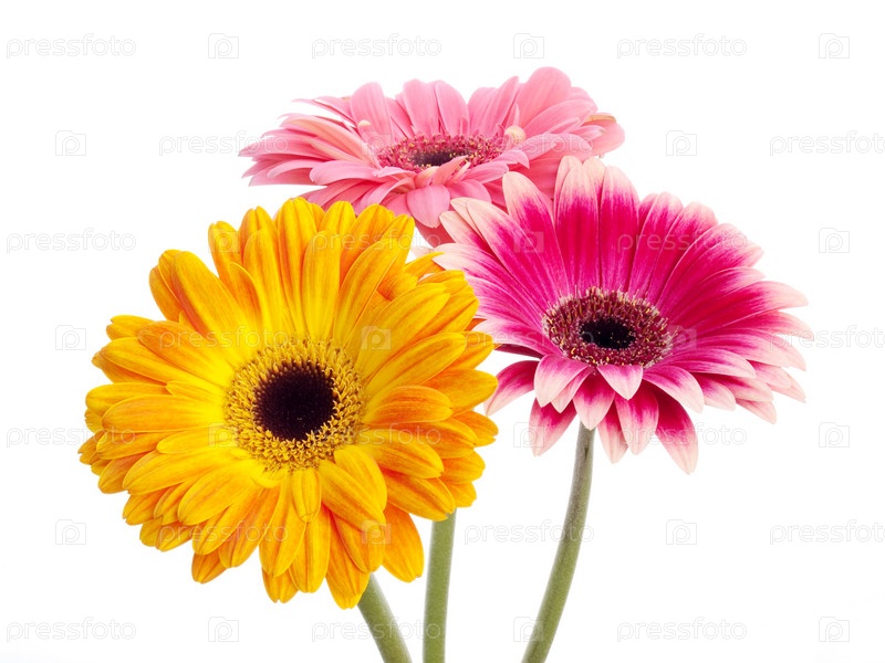 Герберы на белом фоне