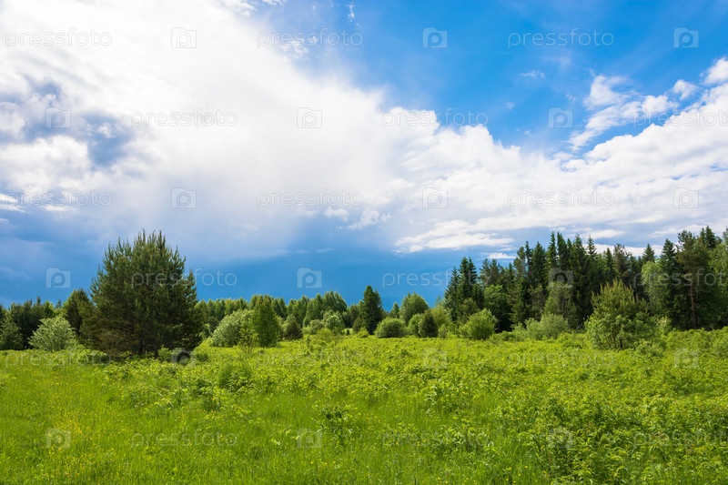 Летний пейзаж с облачным небом