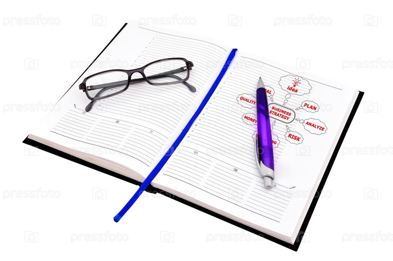 Блокнот, ручка и очки