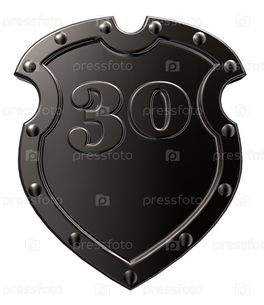 Металлический щит с цифрой 30 на белом фоне - 3d иллюстрация
