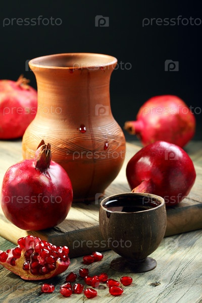 Спелый гранат и сок в чашке