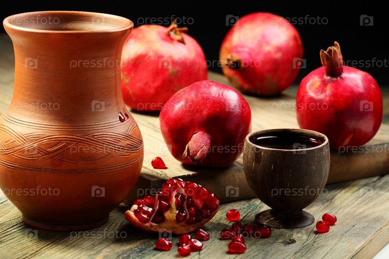 Спелый гранат и сок в чашке