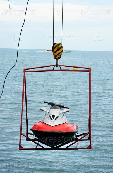 Гидроцикл и подъемник для сухого хранения на фоне моря