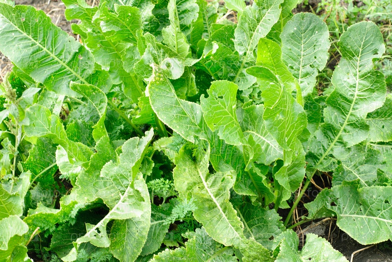 Зеленые листья хрена