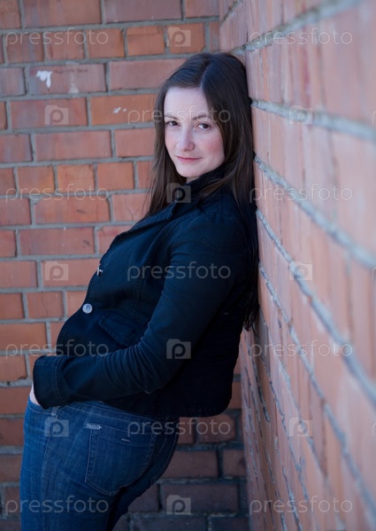 Девушка у кирпичной стены