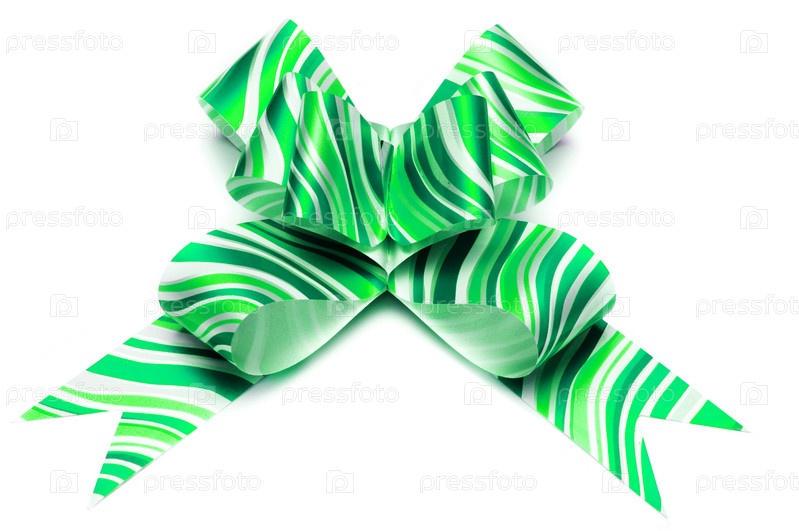 Зеленая лента для подарочной упаковки на белом фоне