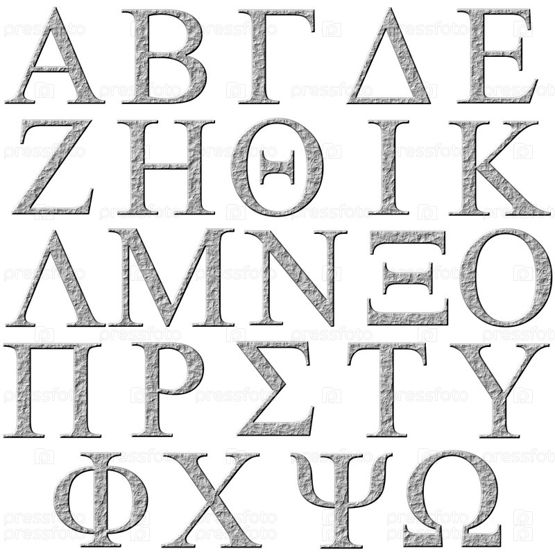 3D каменный греческий алфавит, изолированный на белом фоне