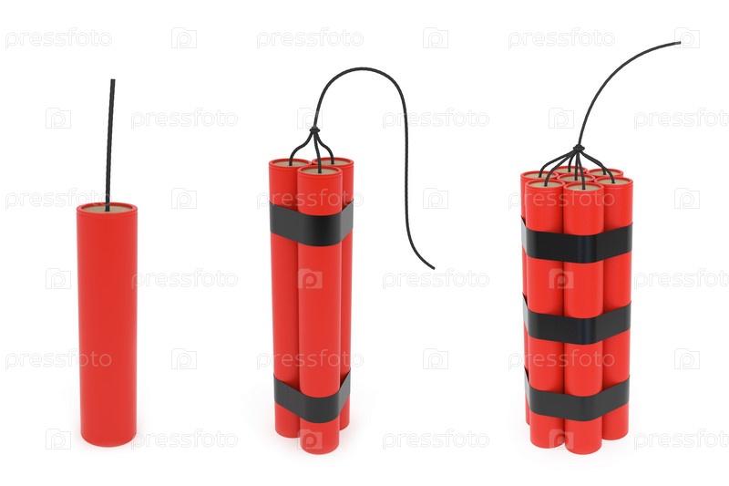 Набор динамита с фитилем на белом фоне. 3D изображение высокого разрешения