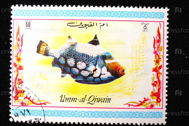 Почтовая марка Умм-Эль-Кувейна 1980 года с морскими рыбами