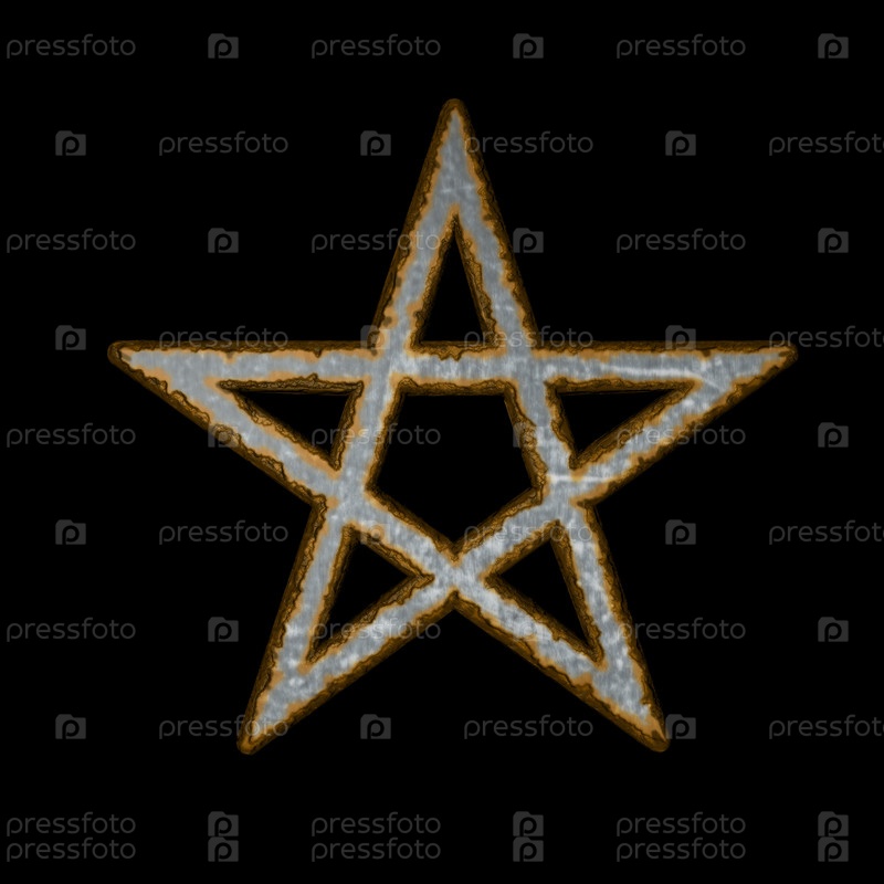 Ржавый пентакль на черном фоне - 3d иллюстрация