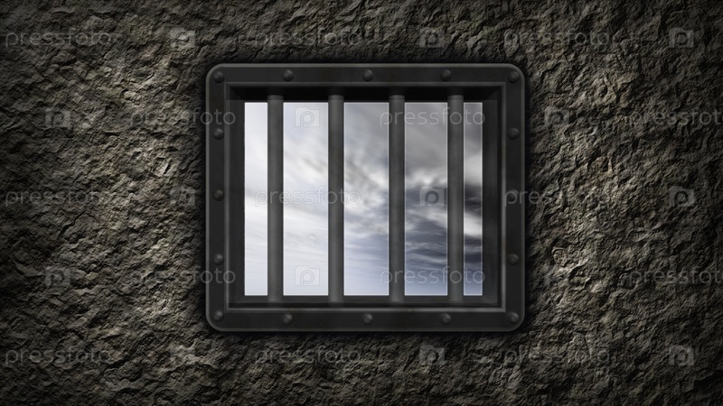 Черное тюремное окно с решеткой - 3d иллюстрация