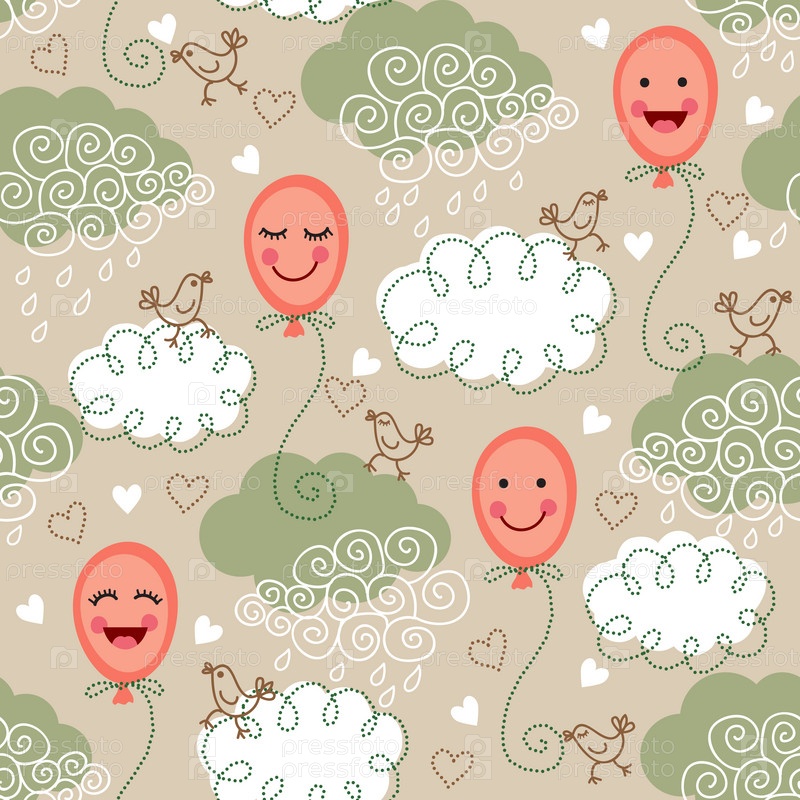 Бесшовный фон с воздушными шарами и облаками