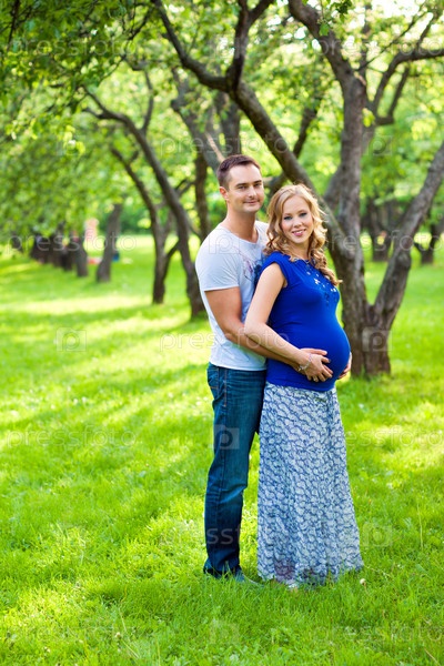 Красивая молодая семья ждет ребенка
