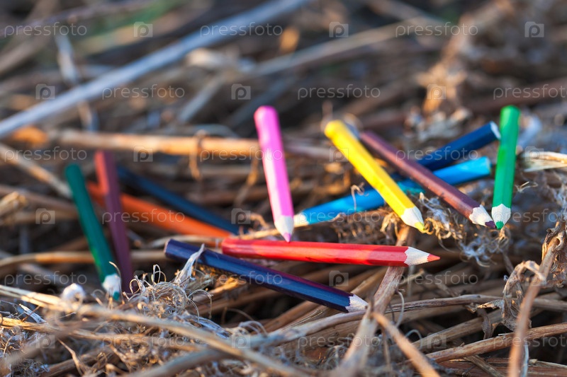 Цветные карандаши на траве