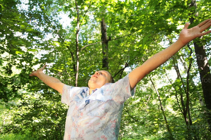 Парень в лесу наслаждается природой