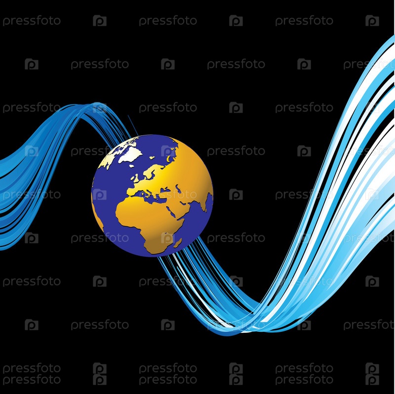 Планета и абстрактные цветные линии на черном фоне