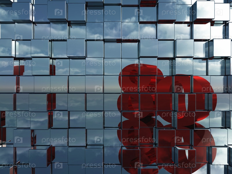 Стена из металлических кубиков отражает число восемьдесят - 3D иллюстрация