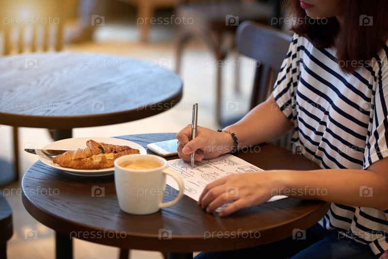 Девушка со смартфоном в кафе
