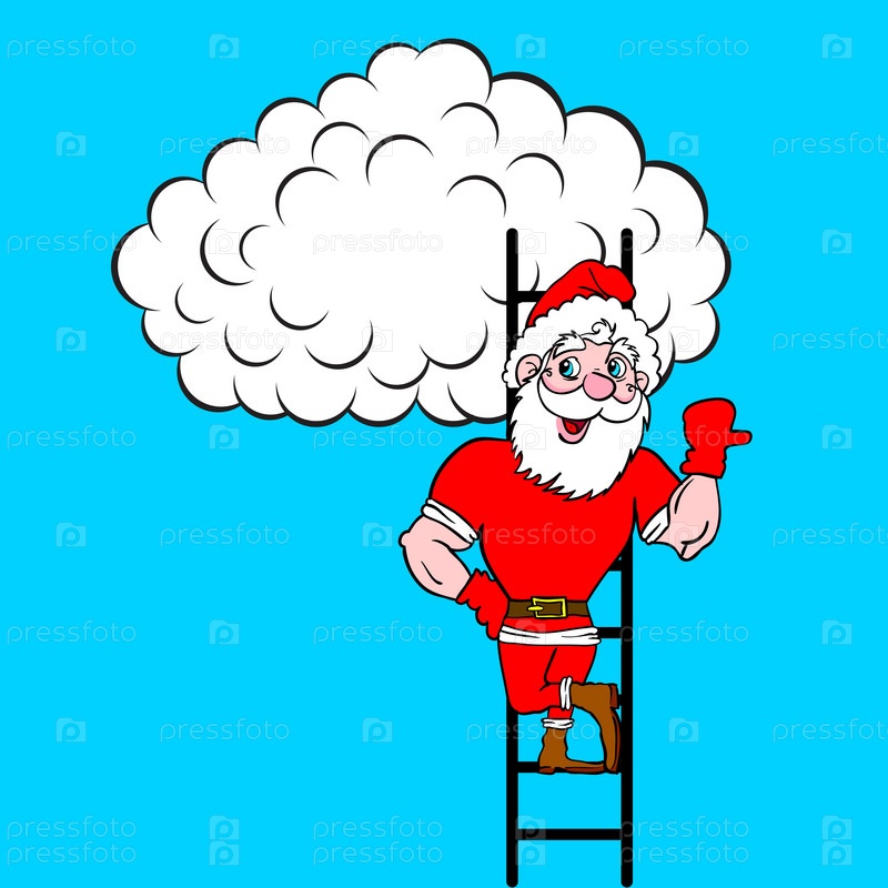 Санта-Клаус идет вверх по лестнице на облаке