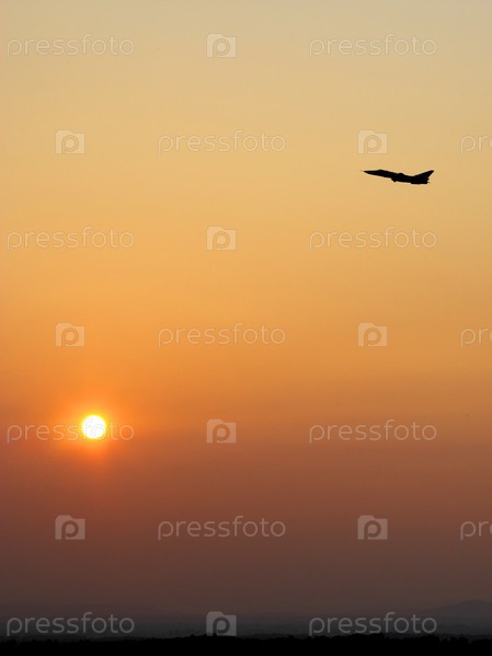 Самолет взлетает на закате