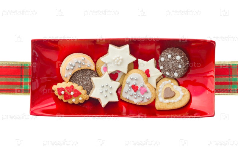 Печенье в красном блюде, изолировано