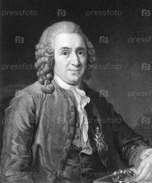 Карл Линней (1707-1778) на гравюре 1833 года. Шведский ботаник, врач и зоолог, известный как основатель современной таксономии, также считается одним из основателей современной экологии