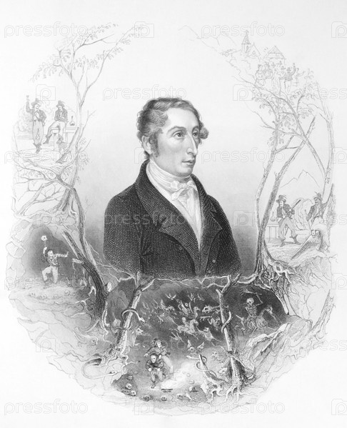 Карл Мария фон Вебер (1786-1826) на гравюре 1800 гг. Немецкий композитор, дирижер, пианист, гитарист и критик, один из первых значительных композиторов романтической школы