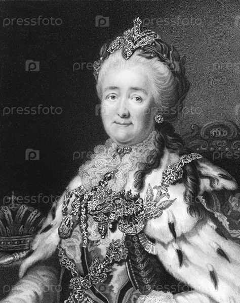 Екатерина II (1729-1796) на гравюре 1835 г. Императрица России с 1762 по 1796 год, также известная как Екатерина Великая