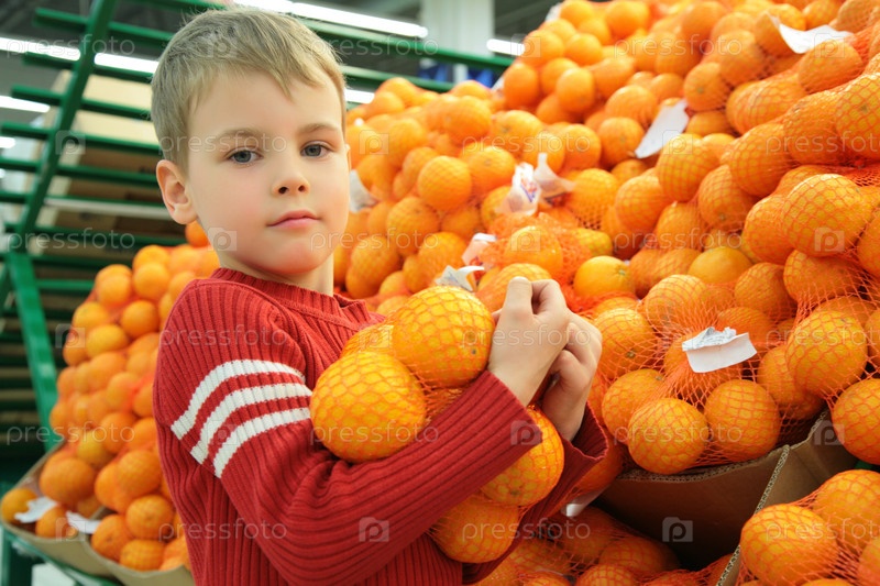 Мальчик с апельсинами в магазине