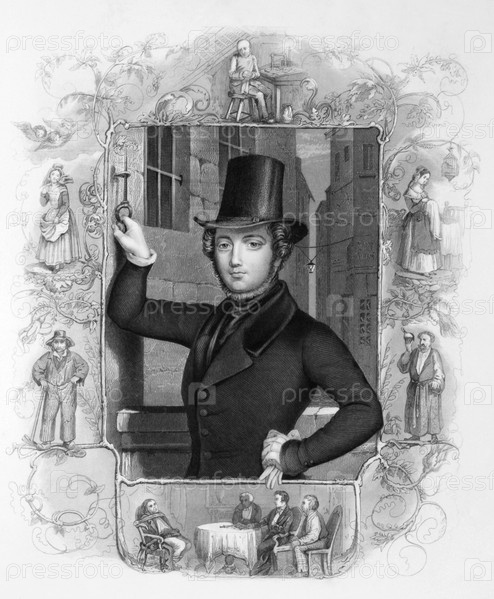 Юджин Сью (1804-1857) на гравюре 1800 гг. Французский писатель