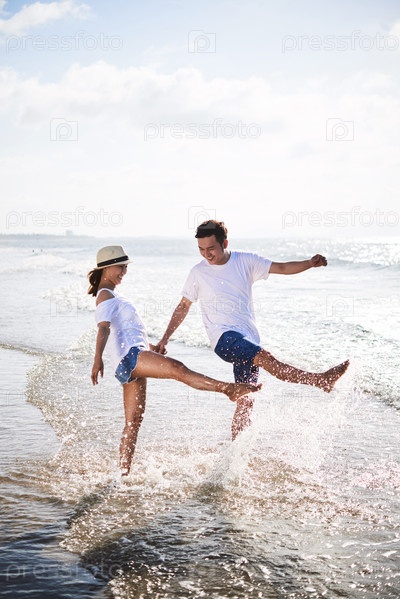 Счастливая пара на пляже