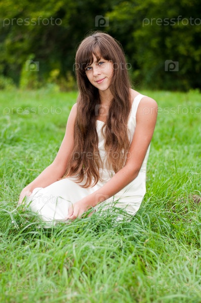 Девушка в белом платье на природе